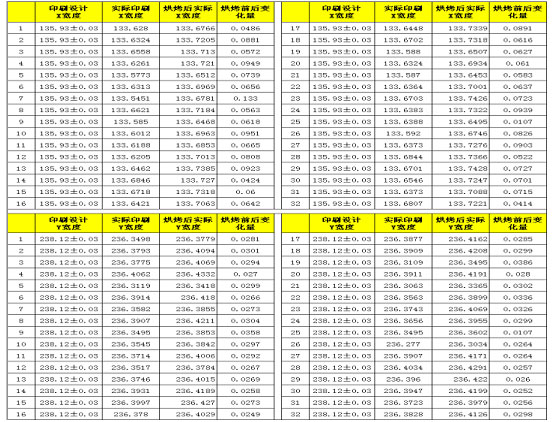 測(cè)試結(jié)果:PY-705印刷烘烤前後尺寸相差不大 ,且均未超過網(wǎng)版尺寸,尺寸較穩(wěn)定;