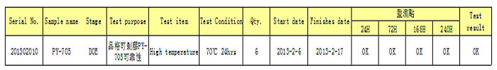 PY-705可剝膠的生產(chǎn)測(cè)試驗(yàn)證;